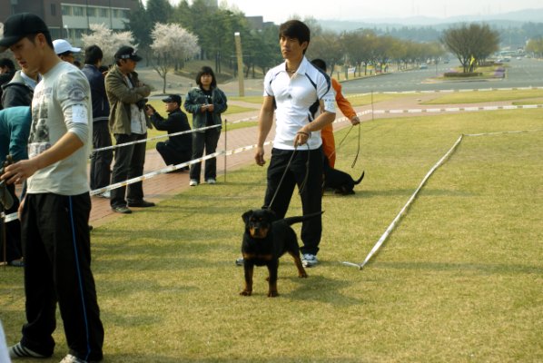 베이비 A조에 출진한 핸들러의 모습이 출진견보다 더 눈에 뛰게 골량이 좋게 보이는 부산지회 소속의 정대식 회원 ..ㅋㅋ