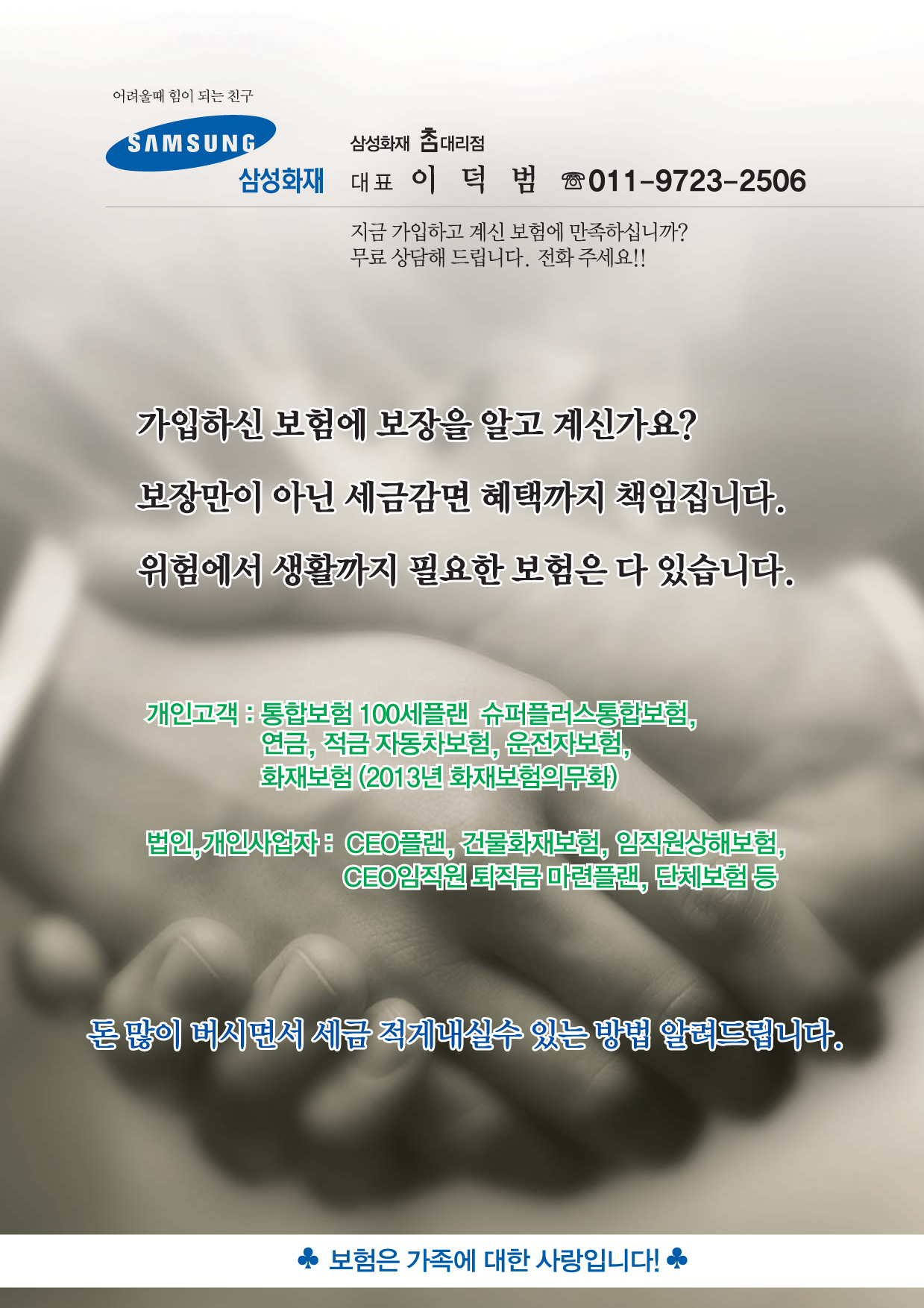 삼성화재 , 표지견, 뒷면 에 모든 전화번호 수정  부탁드립니다